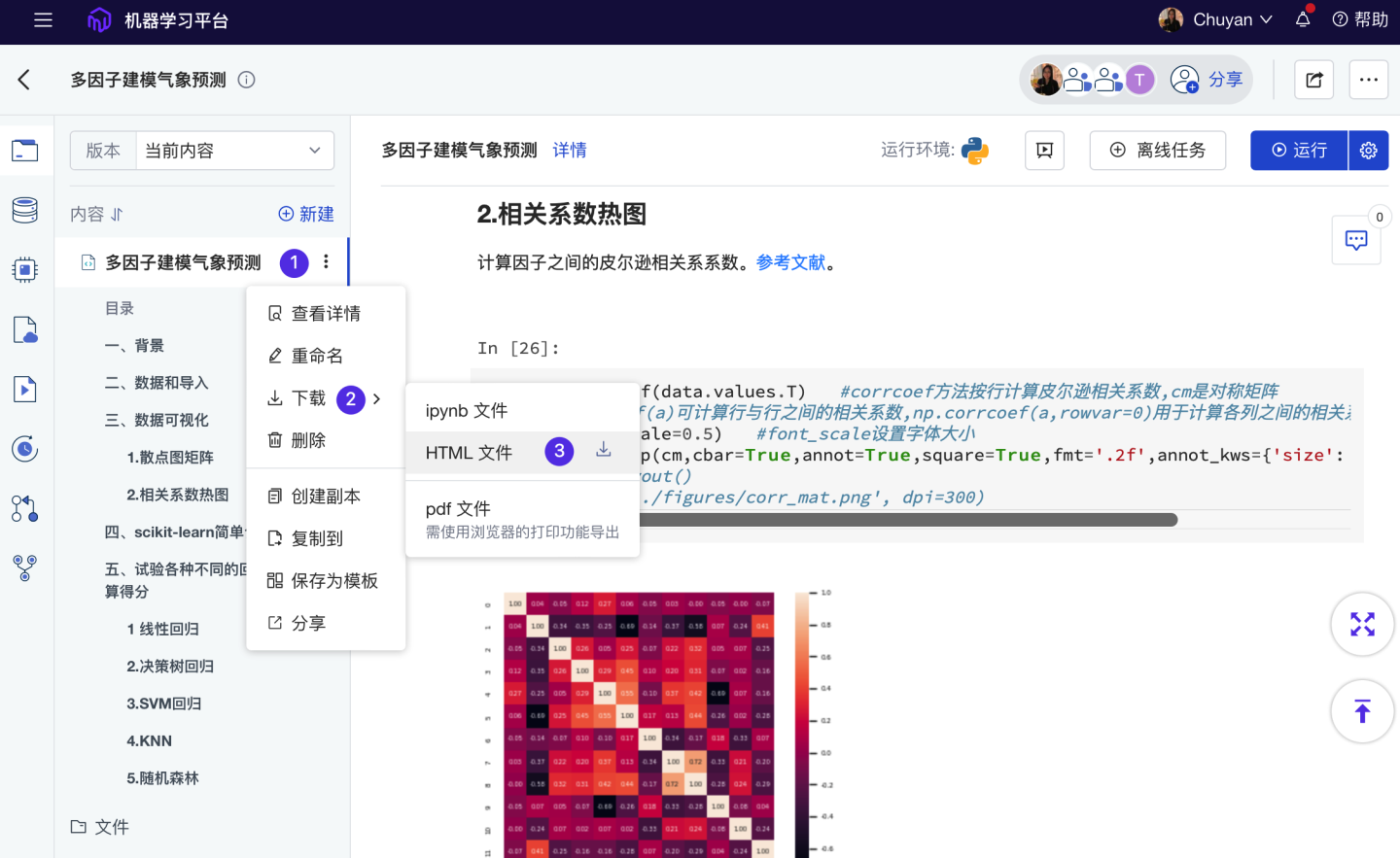 • 新增 Notebook 可下载为 html 文件(基础版✓ 专业版✓ 团队版✓):html 文件会将 Notebook 整页展示(没有分页),Notebook 内链接也可以在 html 文件内进行跳转。