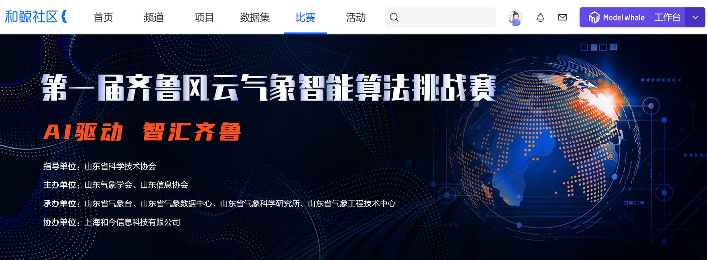 为响应国家顶层政策、充分利用作为新一轮科技革命与产业变革重要驱动力量的人工智能技术,促进山东省气象高质量发展、协助解决技术瓶颈问题,山东气象学会联合山东信息协会组织开展第一届齐鲁风云气象智能算法挑战赛(下简称“大赛”),和鲸科技作为协办单位全程为本次大赛提供支持。