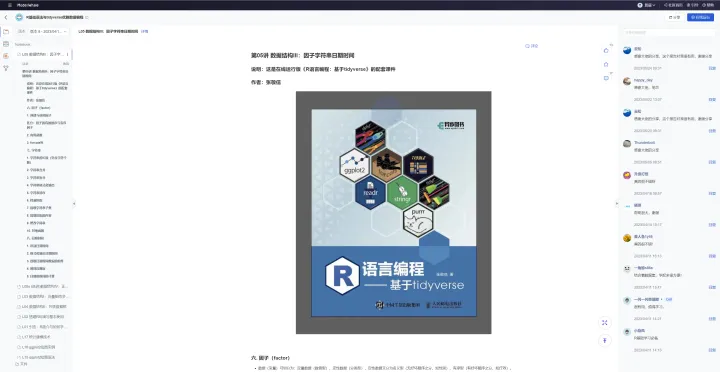 张老师已将书配套的源数据、R 程序、PPT 讲稿、教学大纲(供参考)都公开在了异步社区官网、GitHub、码云等平台,可供读者免费下载。同样,和鲸社区提供了可在线运行的版本,便于读者边阅读边复现运行。