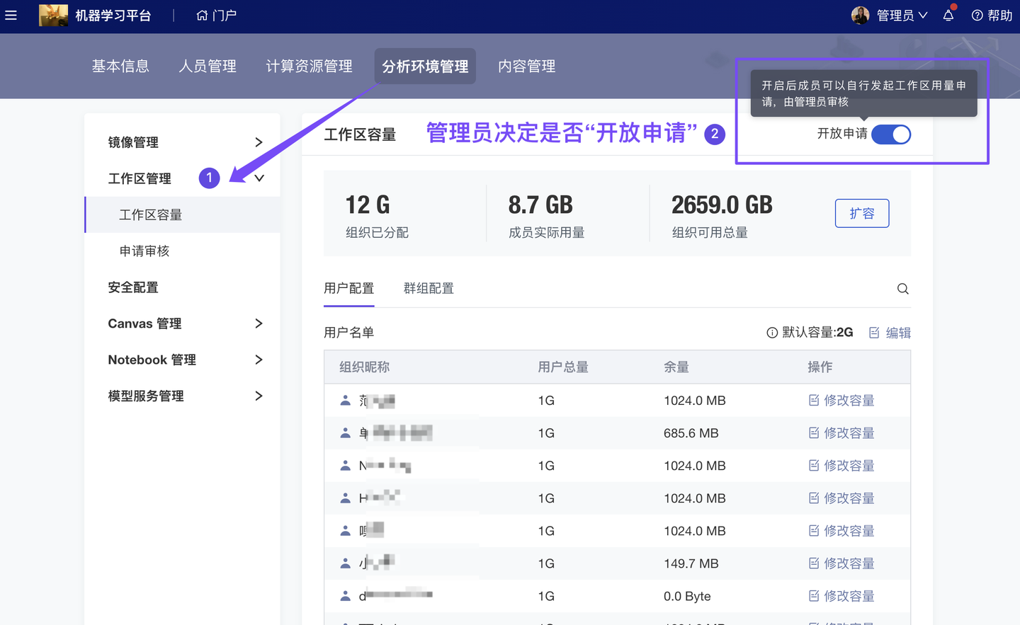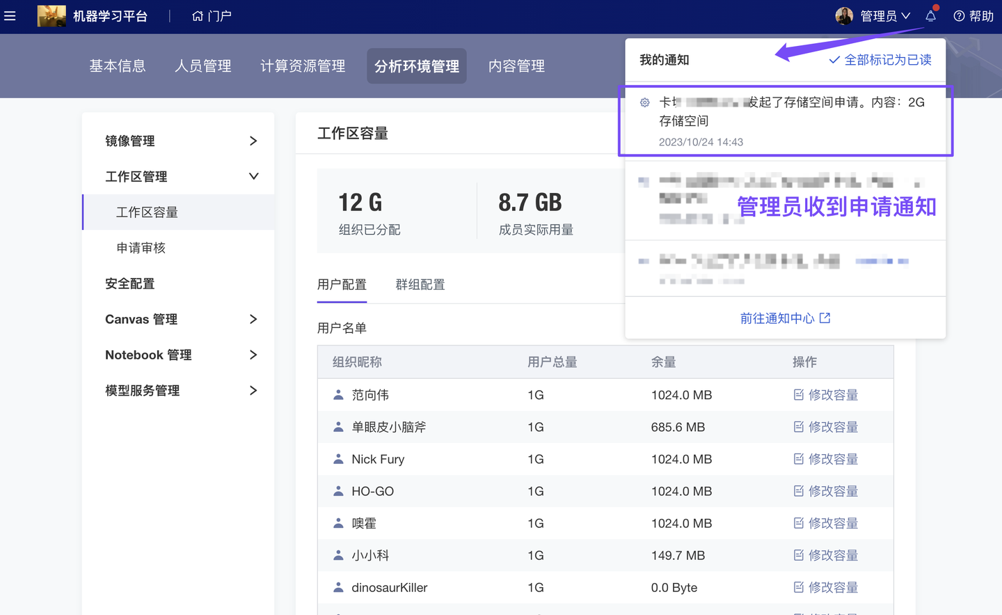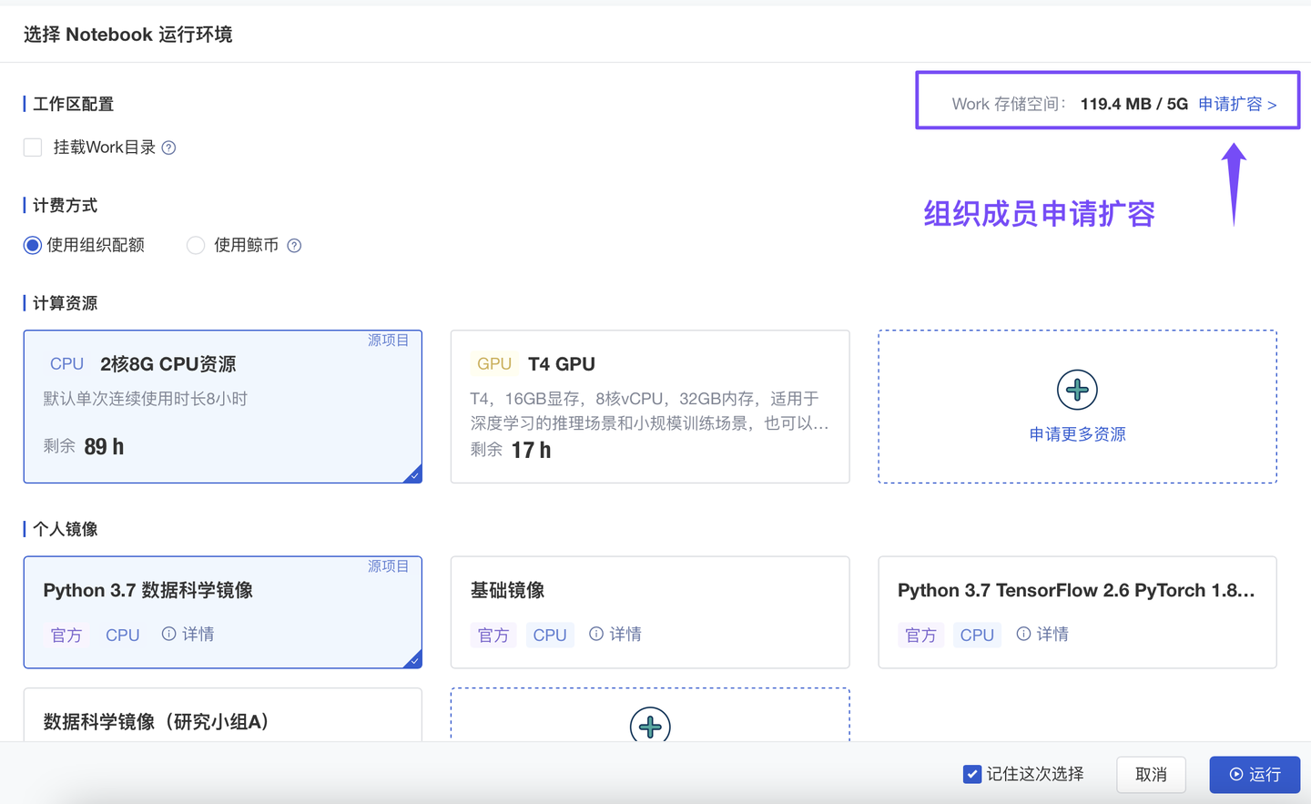更多详见:ModelWhale 分析环境管理 - 工作区容量