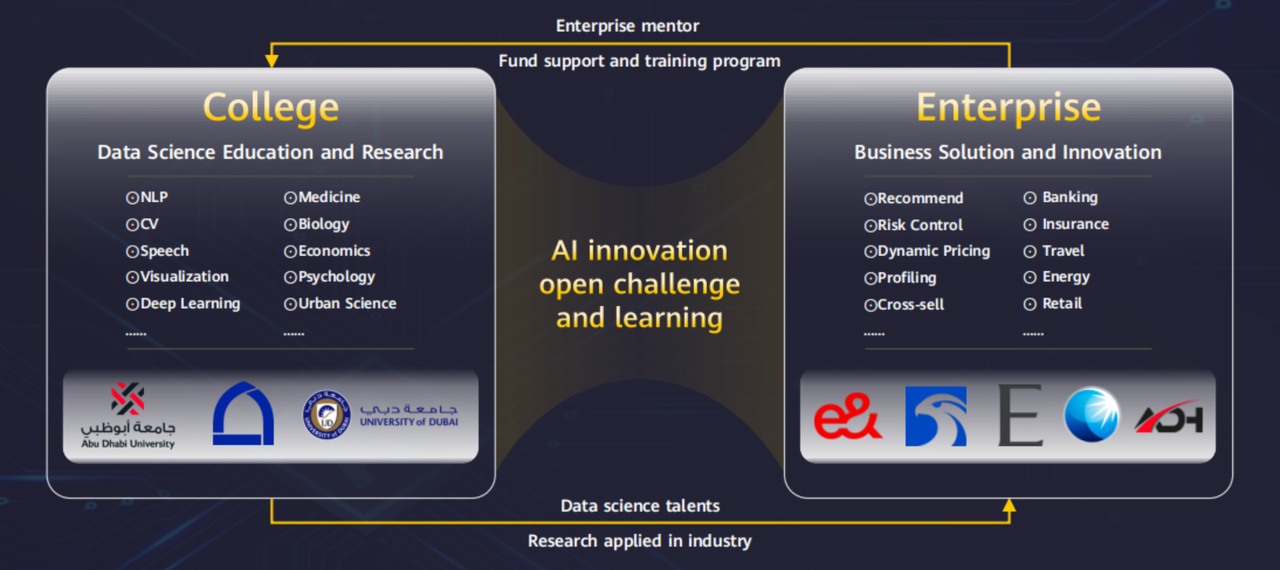 他以阿联酋的高校举例,展示了和鲸是如何基于现有的行业资源、场景服务等差异化的产品供给与服务,为阿联酋提供“产品+服务+资源”的端到端交付,架起 AI 领域教育与产业间的桥梁。他表示,事实上“如何帮助本地的青年人才掌握 AI 的技能、参与 AI 的行业”这个问题在北美也没有被很好解决,北美的 AI 人才也是短缺的。