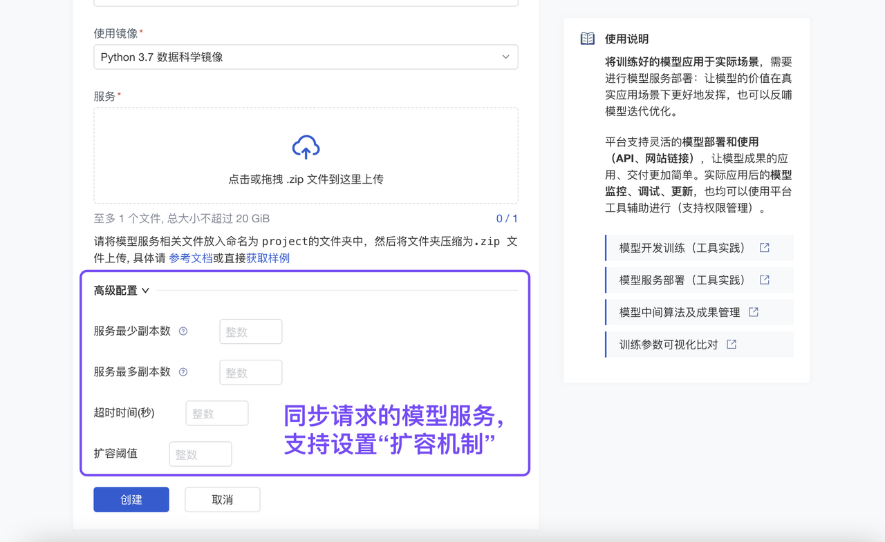 模型开发训练阶段,平台提供训练过程记录(Tracking)及可视化比对分析,同时兼容 MLFlow,全面协力模型参数的尝试与调整、最优结果记录及部署;服务调用环节,支持灵活的同步/异步请求以及精细的算力扩容管理;平台的模型运维监控系统,提供你详细的模型调用记录、算力使用追踪,以便调整运行策略(扩容/回收)、二次调优模型。