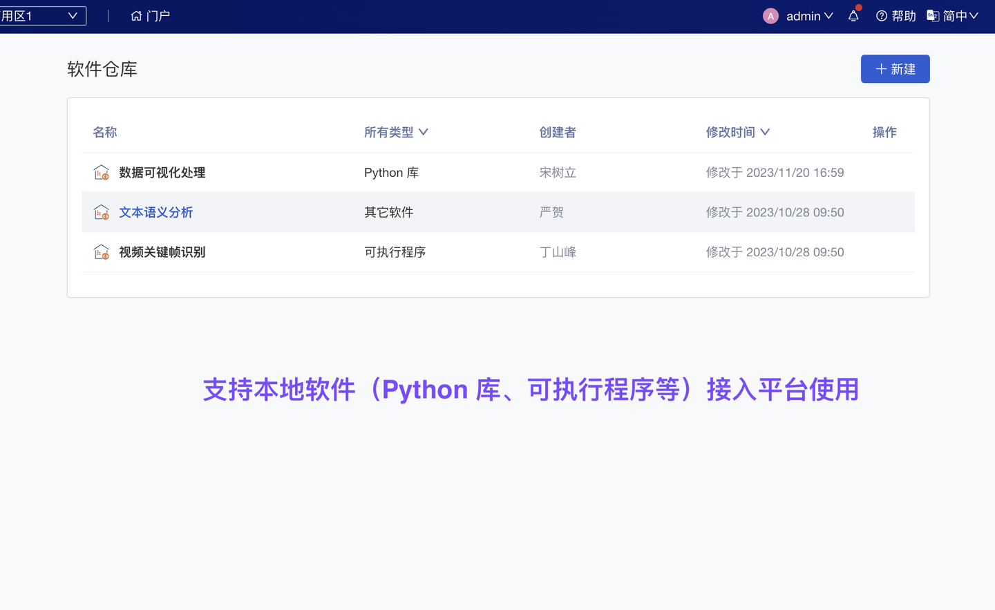 - 新增 软件仓库:支持在平台 Notebook 在线调用本地常用的 Python 库、可执行程序及其他软件。