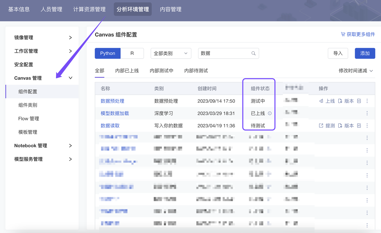 平台 Canvas 拥有 “算法封装”+“算法快捷使用” 能力,组织内算法工程师可以【自研 Canvas 组件】封装代码,【分发 Canvas 分析模板】供组织成员直接使用、快速搭建研究框架、低代码完成数据分析工作。本季度我们对“Canvas 多人自研开发流程”进行了升级迭代:开发流程更规范、开发权限更清爽、组件使用更便捷。