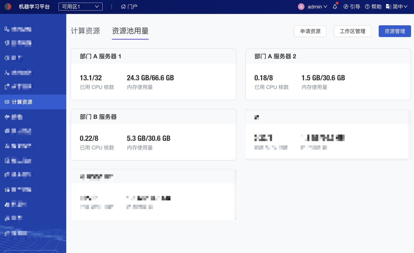组织内顺畅的开放协同、合力研究,需要统一的分析平台进行资源及成果共享。而算力方面,在更开放的协作场景,部门间的算力“相互支援、按需调度”,可以实现更充分的算力利用、释放研发效能。平台现已支持将不同部门的机器构成不同的节点池(资源池);用户启用算力时,平台会依据优先级策略调度算力:独立(非共享)节点池 > 共享节点池。