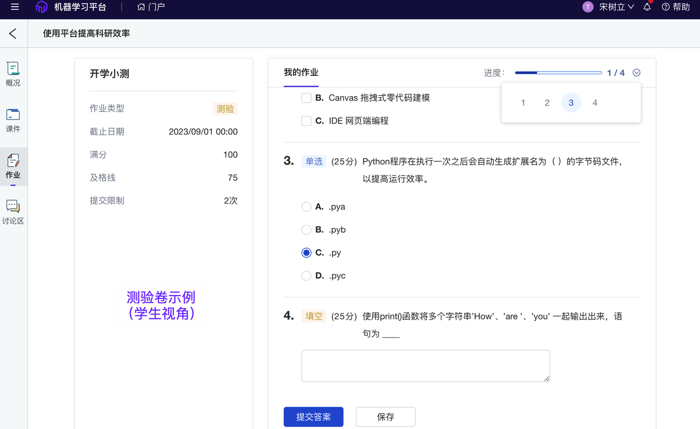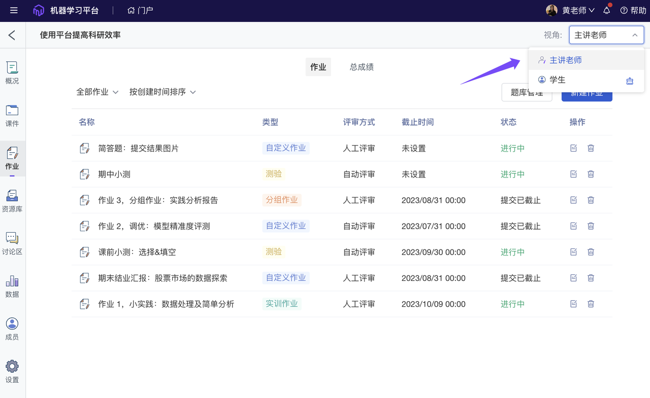 - 高校:Python 案例实训教学(OBE)能力拓展,新增 分组作业、老师-学生视角切换、优化结课存档