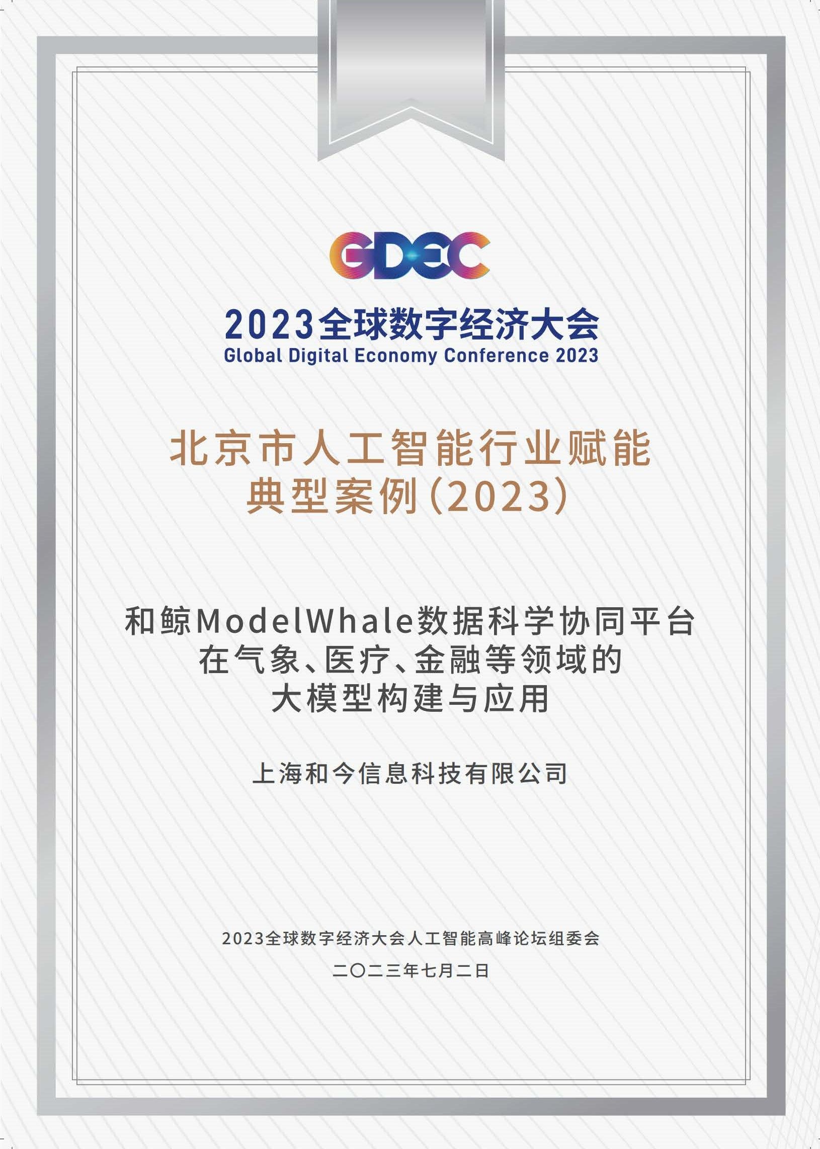 - 北京市人工智能行业赋能典型案例(2023):和鲸 ModelWhale 数据科学协同平台在气象、医疗、金融等领域的大模型构建与应用