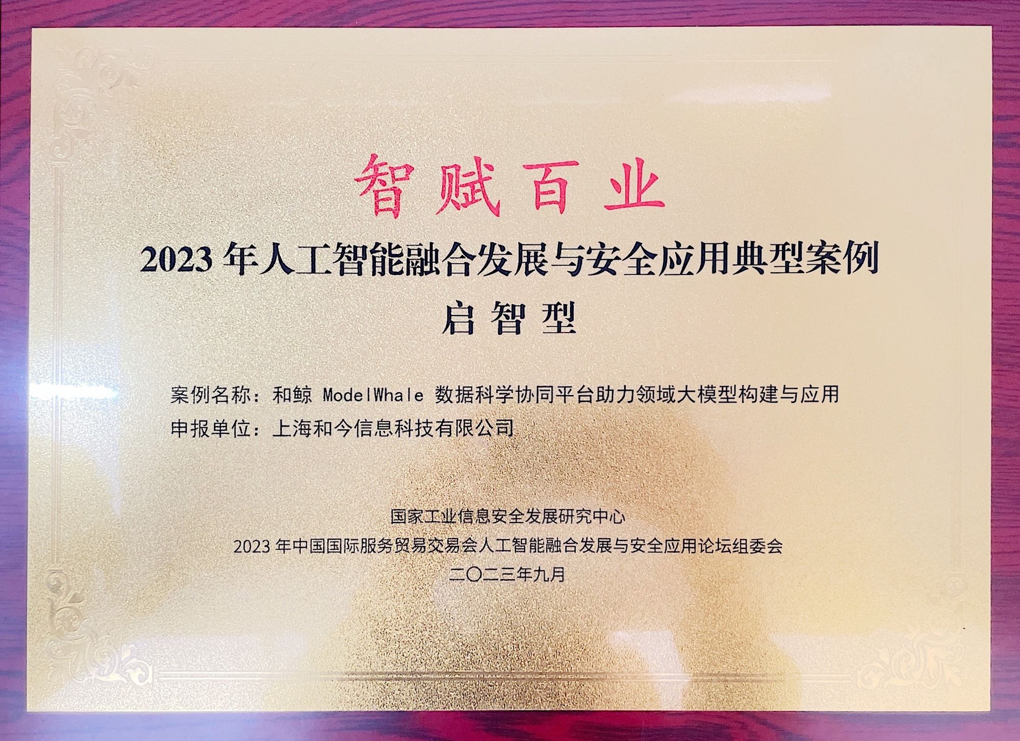 - “智赋百业” 2023 年人工智能融合发展与安全应用典型案例:和鲸 ModelWhale 数据科学协同平台助力领域大模型构建与应用