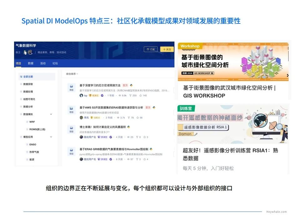 会上的其他专家也多次提及协同的重要性。站在数据智能研究的角度,组织的边界是模糊的,它并不局限于独立的研究机构内,社区化是承载模型成果、推动领域发展的重要方式。不同的组织需要设计相应的模型成果接口,以便与外部组织进行交流和调用。例如,我们设计的和鲸社区,将不同垂直领域,例如气象科学数据分析的模型和成果以开放的形式在平台上共享。