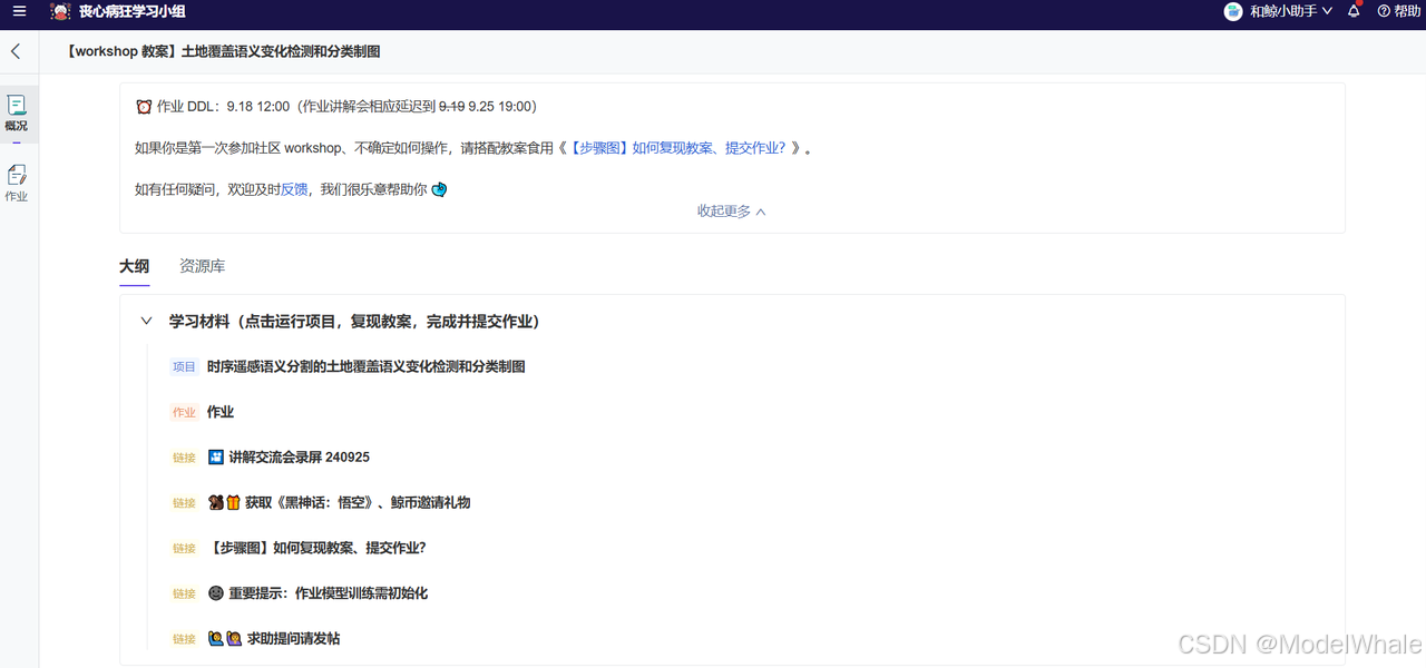 和鲸社区 Workshop 采用案例式学习+翻转课堂设计,不同于线上讲座,通过让参与者动手 coding、完成一项尽可能贴近真实科研/业务场景的地球科学x数据科学挑战。和鲸以其自研的数据科学分析平台 ModelWhale 为参与学员提供服务。ModelWhale 为云端环境,学员可即时接入数据、GPU 算力资源,通过网页开启编程学习,高效复现导师教案,并使用内置的 Jupyter Notebook 及版本管理功能轻松编写与修改代码。同时,由和鲸社区为 Workshop 开设社群与讨论区,导师、社区运营方及技术人员以完善的交流、答疑服务,大幅优化参与者的活动体验。