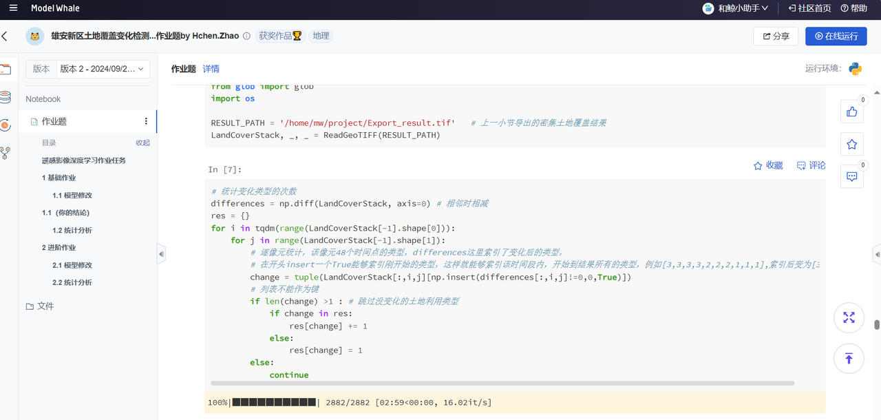 “和鲸所搭建的线上学习平台十分便捷,对于不同场景的项目都设定了相应的环境,省去了本地配置环境的麻烦,经过workshop的作业提交,批改和分享会讲解的过程,学习到了很多新知识,也掌握了诸多新方法,如土地利用变化检测的模型框架。”