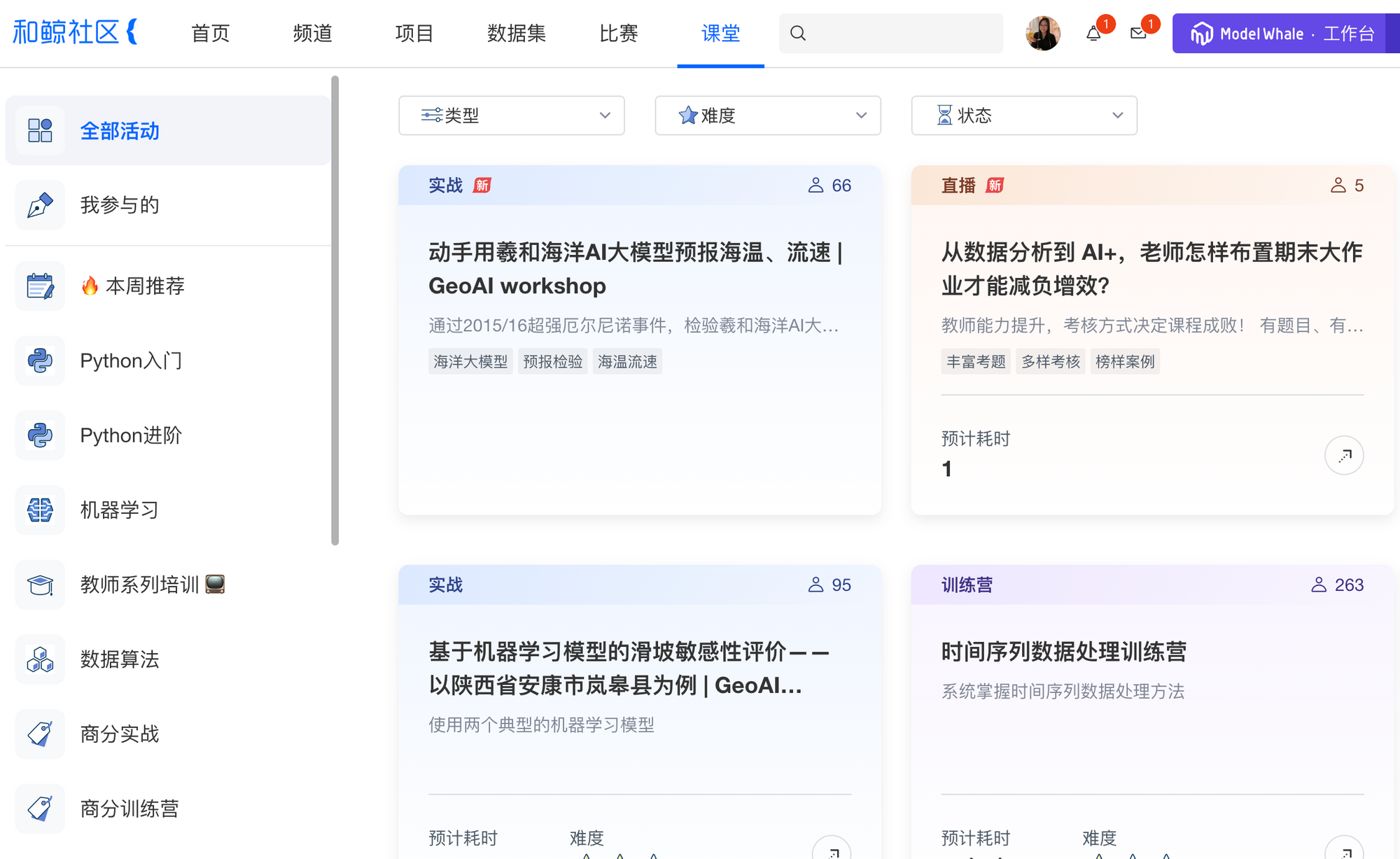 - 和鲸社区:新首页和医学学习路径已上线、数据科学学习路径(气象、经管、通用)已更新