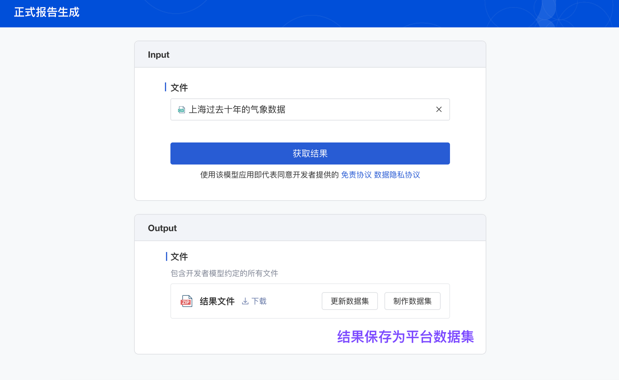 - 数据流转:模型输出结果,新增保存为平台数据集