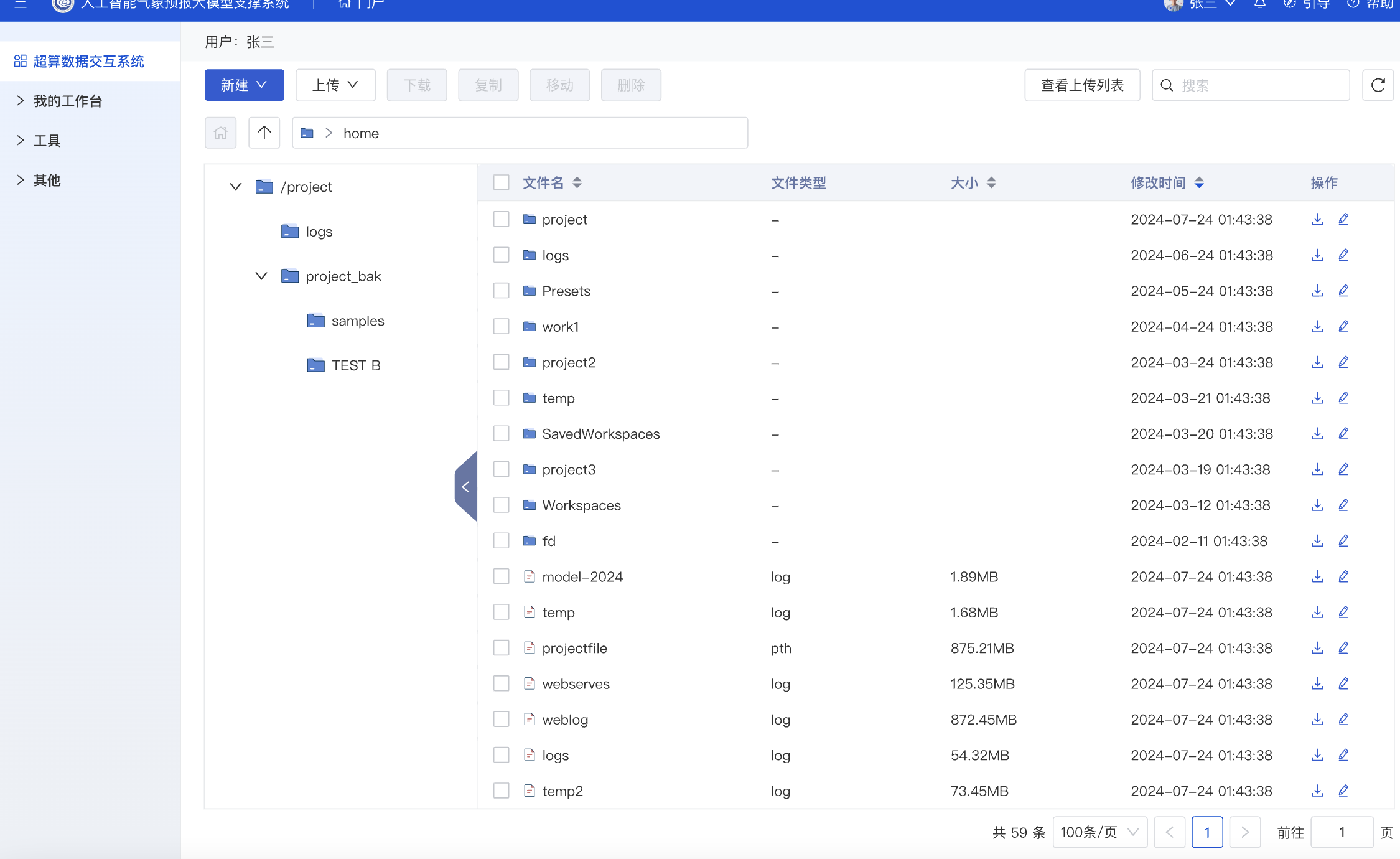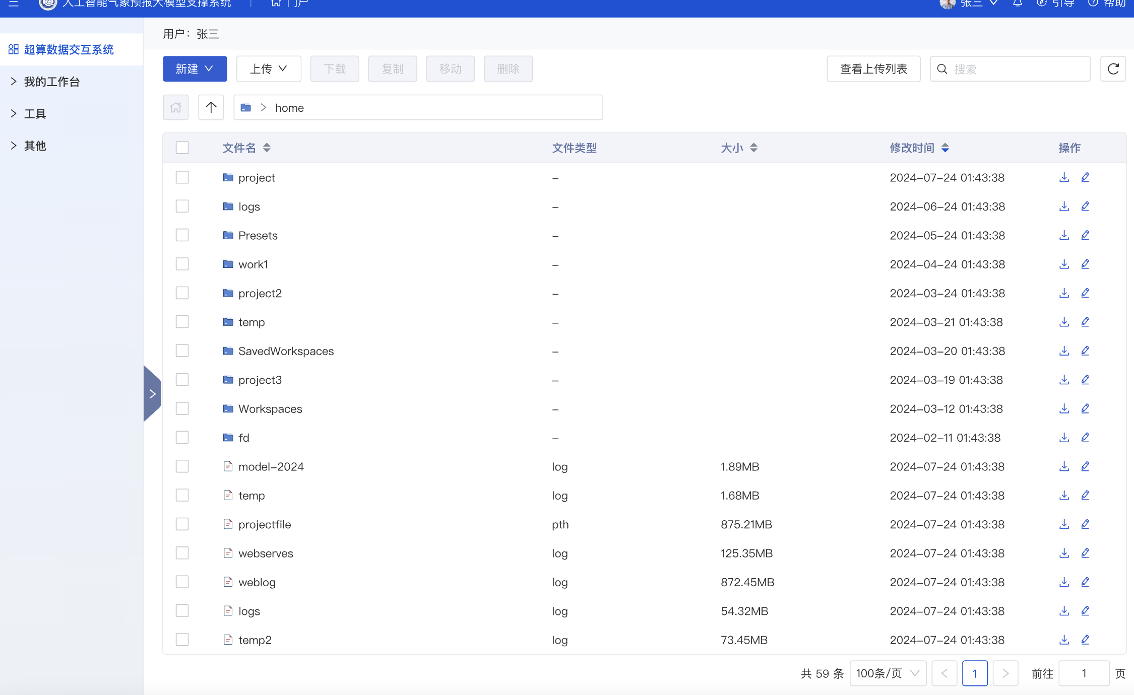 用户可以在 ModelWhale 使用 HPC 的高性能算力和存储空间。由于 HPC 集群数据访问的高安全性,用户跨平台的数据增删改查曾一度是个问题。现 ModelWhale 已提供超算数据对接能力,用户可以在网站直接访问超算集群中的数据,对此进行预览、下载、上传等操作,大大提升用户体验和工作效率。