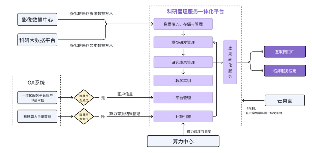 针对研究型医院普遍面临的数据孤岛、重复造轮、产研分离等问题,该平台提供从数据提取、模型产出到科研转化的全链路服务,融合研究所需的多规格算力,为跨团队跨角色协同管理提供工具支持,可达成“降低科研门槛,减轻科研负担,加速科研进程”的核心目标。