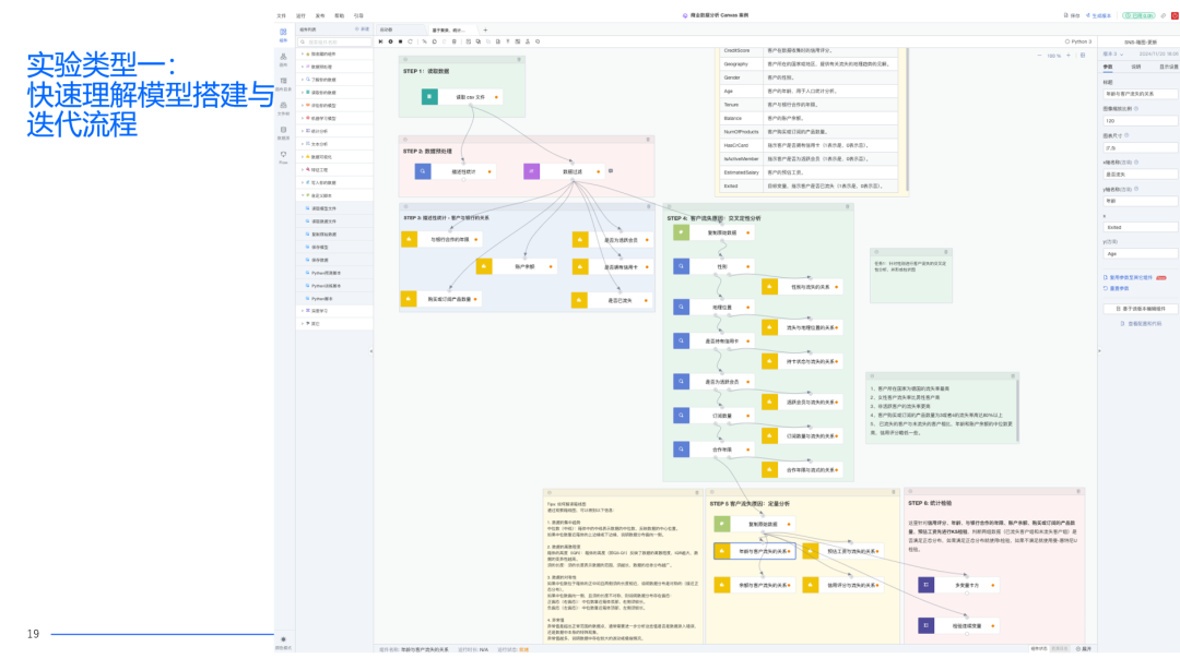 ModelWhale 提供拖拉拽式模块化编程组件,学生无需编写代码,即可快速理解机器学习的建模流程以及人工智能模型的迭代过程。