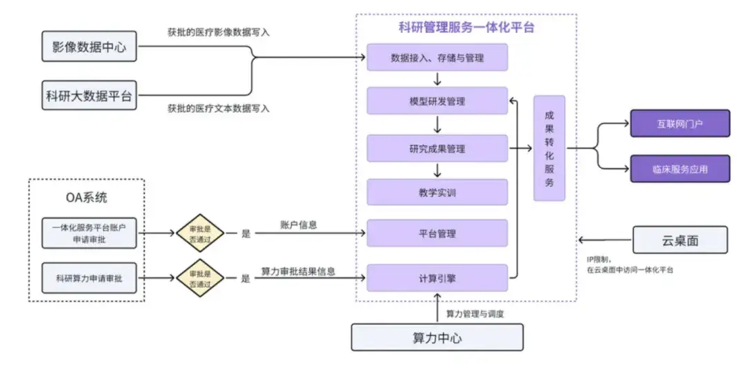 “学科+AI”教研训一体化平台打通数据、算力、模型算法、成果医院方面,和鲸科技携手华中科技大学同济医学院附属同济医院打造的科研管理服务一体化平台,成为了研究型医院建设的示范与参照。针对研究型医院普遍面临的数据孤岛、重复造轮、产研分离等问题,该平台提供从数据提取、模型产出到科研转化的全链路服务,融合研究所需的多规格算力,为跨团队跨角色协同管理提供工具支持,可达成“降低科研门槛,减轻科研负担,加速科研进程”的核心目标。