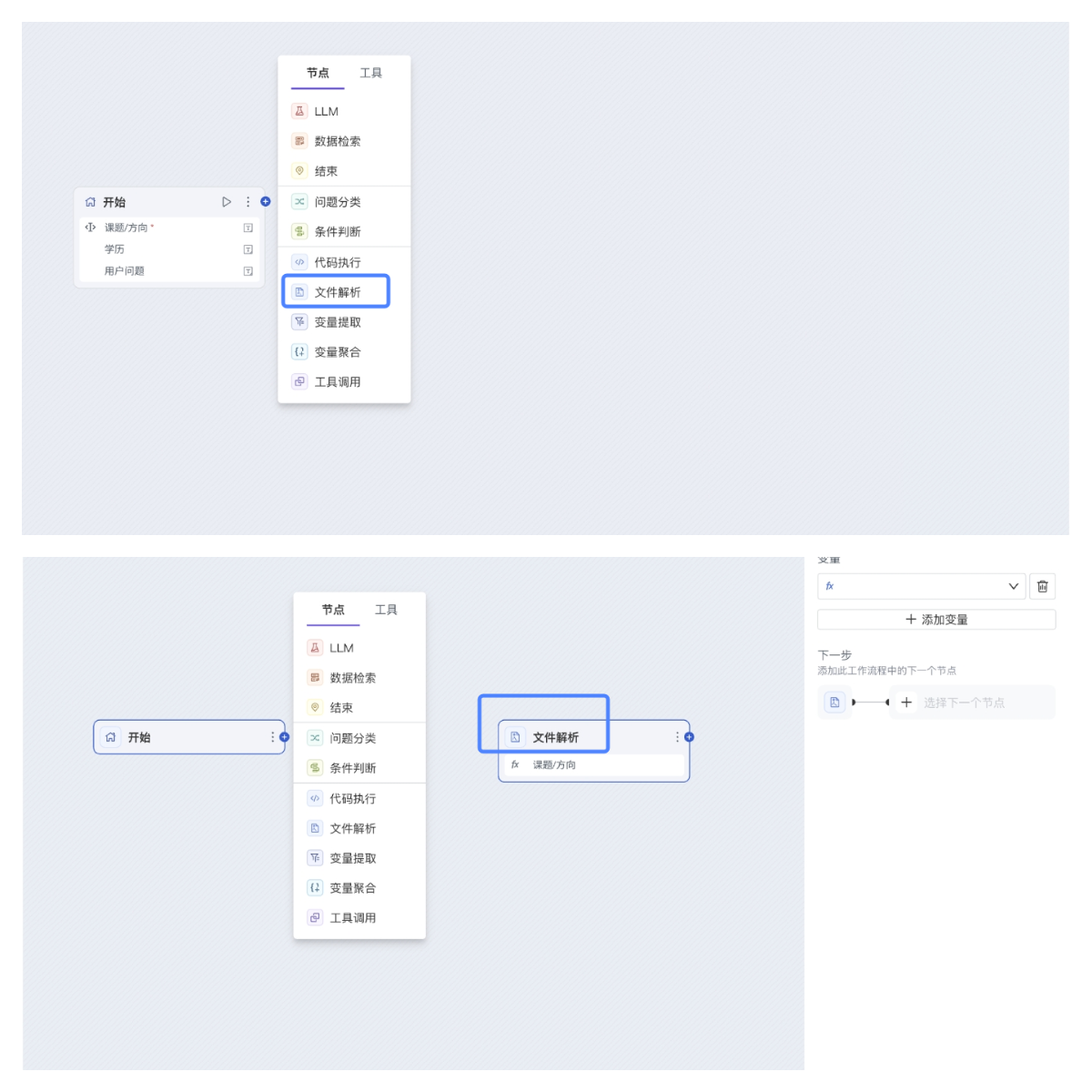 Workflow 支持用户上传文件后,新增官方的文件解析节点来承担读取并解析文件的工作。