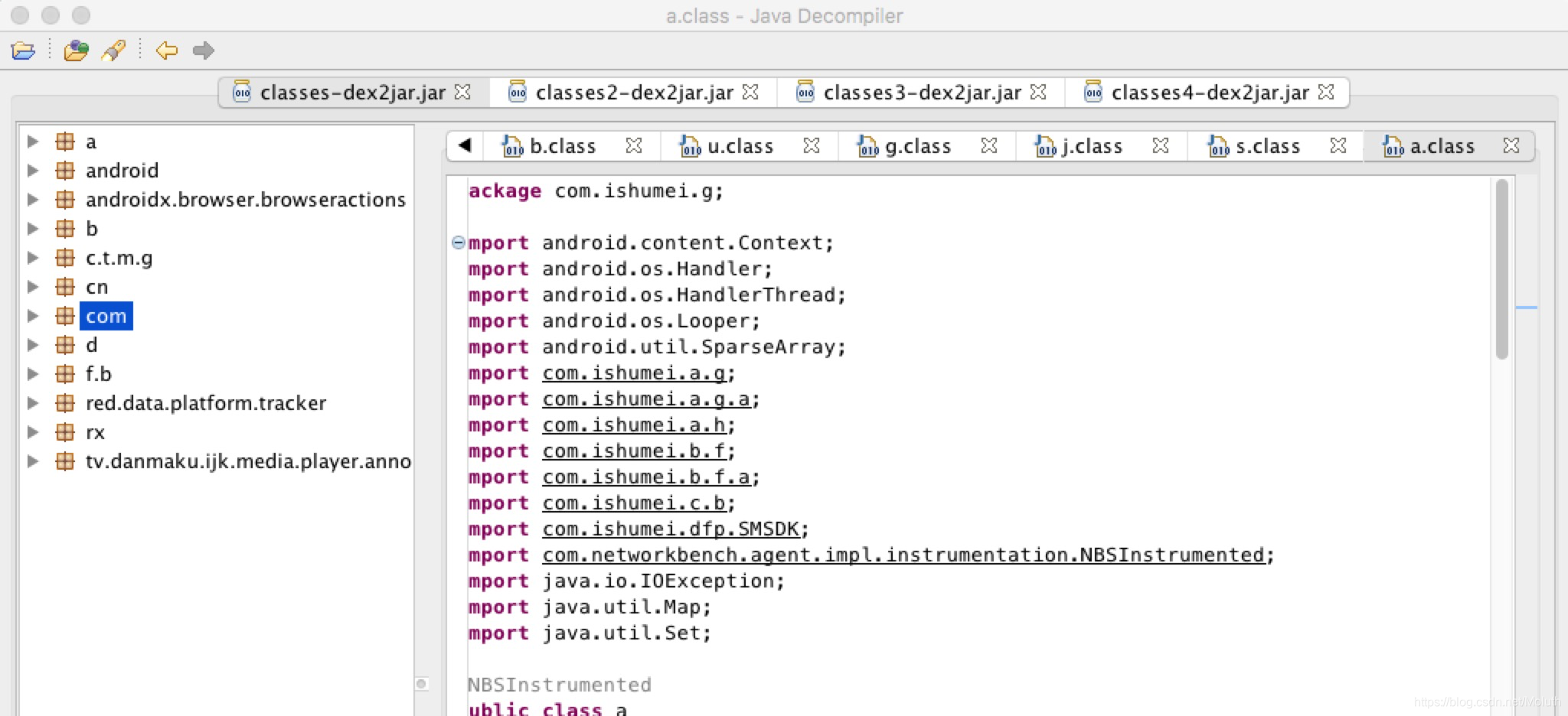 执行后会生成一些jar包,然后用jd-gui打开这些jar包,就可以看到java源代码了,如下图所示。