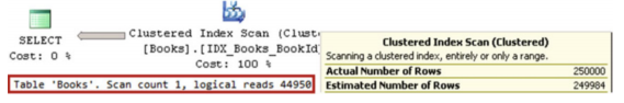 这就引出了一个非常重要的结论。使用静态统计更新阈值时,该数字触发统计信息更新所需的统计信息列的更改与表的大小成正比。的表越大,自动更新统计信息的频率就越低。例如,在一个具有需要对统计列执行约2亿次更改才能执行统计过时了。如果可能,建议使用动态更新阈值。让我们看看这种行为如何影响我们的系统和执行计划。此时,表dbo。书有126.5万行。