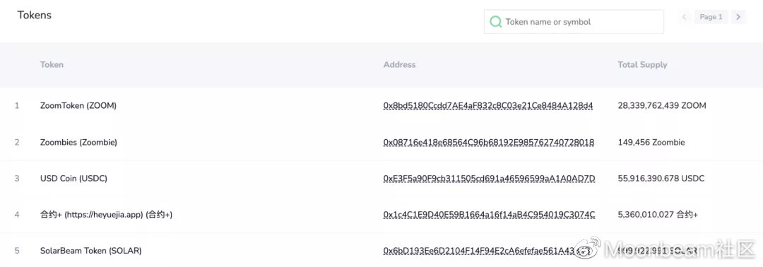 相关链接:https://blockscout.moonriver.moonbeam.network/tokens