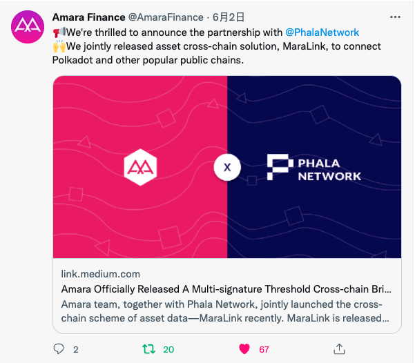 AmaraLink很早我们团队就提出来了,2021年6月,Amara联合Phala联合推出资产跨链方案AmaraLink,并在BSC与Polygon网络进行了测试,经过不断完善,最终形成现在的AmaraLink。