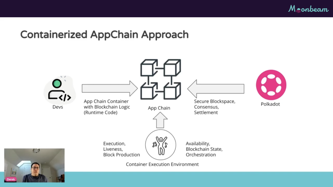 关于Moonbeam正在筹划的事,我也做一些介绍,那就是Containerized app chains(容器化的应用链)。
