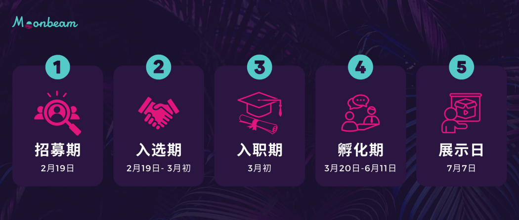 3月初,Moonbeam Accelerator将根据候选人目标和目的,联系10位合格候选人以及他们的项目入选加入Moonbeam Accelerator加速孵化计划。同时这些候选人将伴随着一份“体检报告”,项目有什么优势,劣势是什么,哪些资源能为你所用?进入加速孵化器之前,创业者已经有了一个清晰方向。