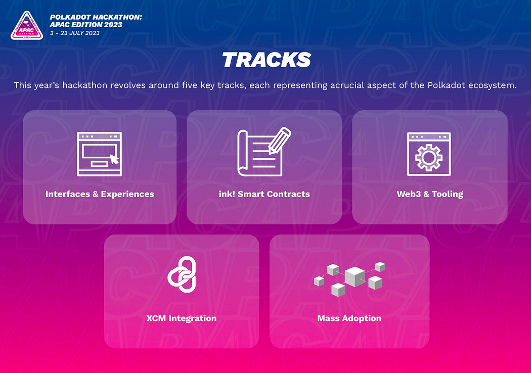 本次黑客松共涵盖5个主题:界面和用户体验、ink!智能合约、Web3和工具、XCM集成和大范围采用。入围决赛的团队和项目,将在2023年9月6日在首尔dotSocial活动上展示他们的想法,获得无与伦比的曝光度和认可。
