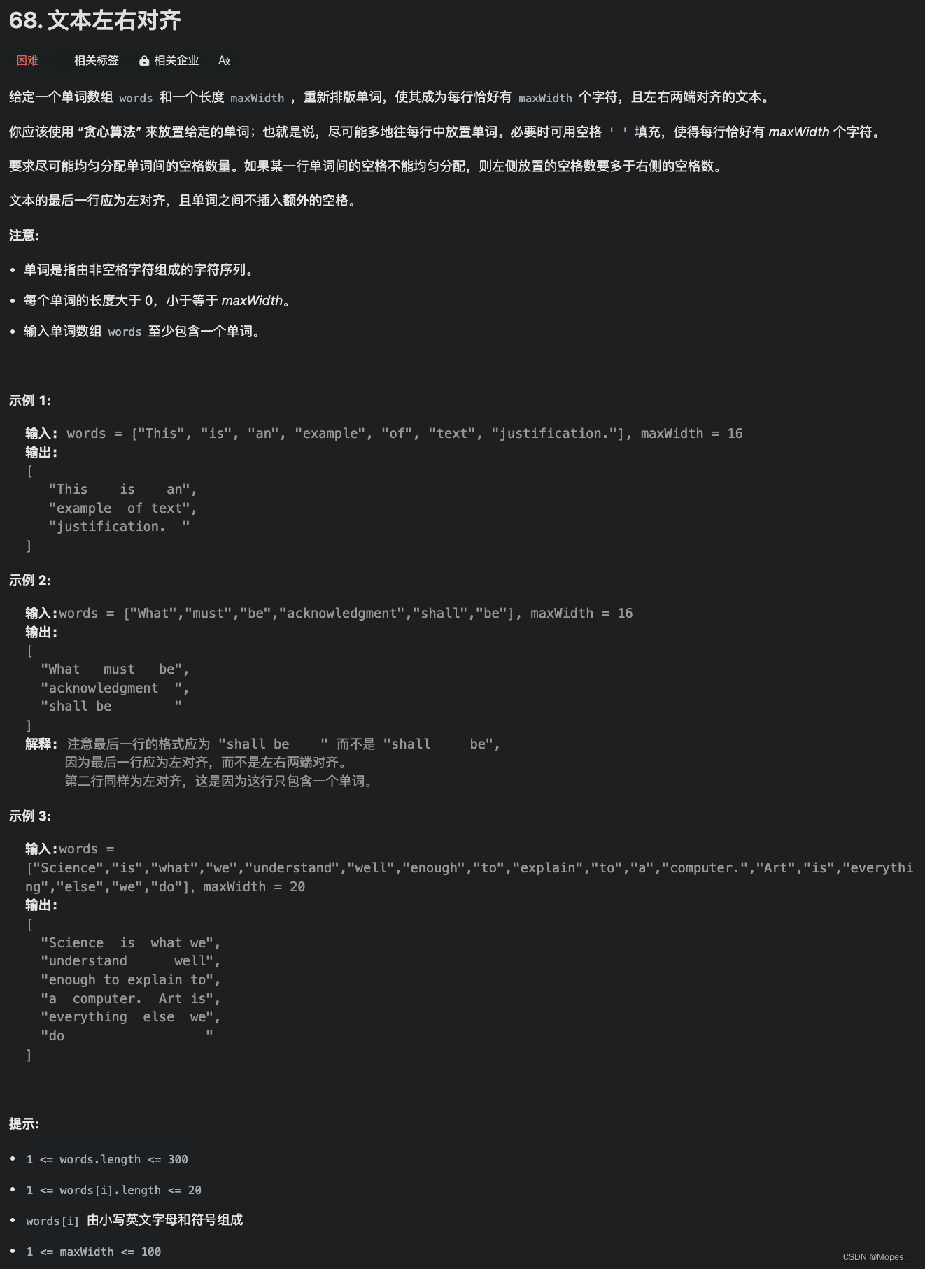 # 循环确定当前行可以放多少单词,注意单词之间应至少有一个空格