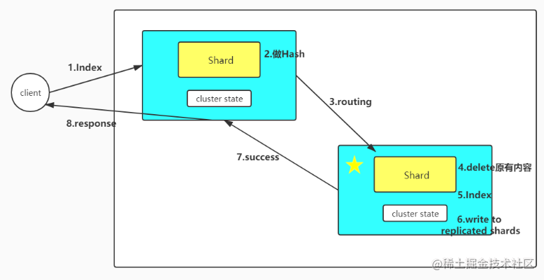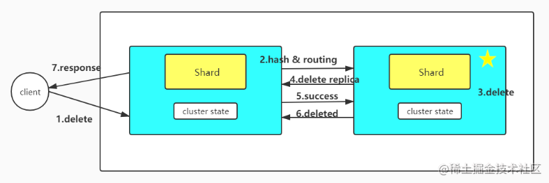 分片的写入说完了,同理,删除一个文档也同样,具体就不再赘述了: