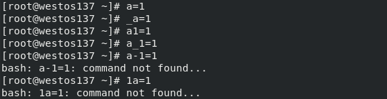 [root@westoslinux ~]# a=1
