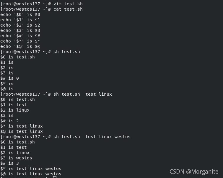 $@ is westos linux redhat <!脚本后所输入的所有字符'westos' 'linux' 'redhat'>
