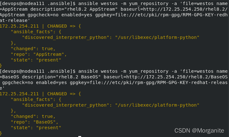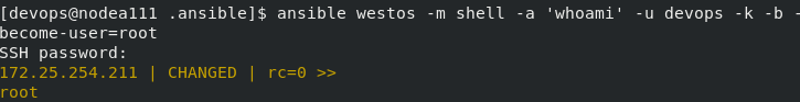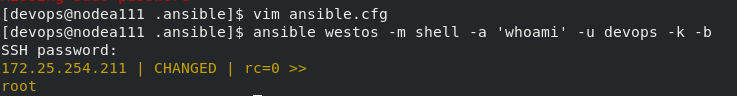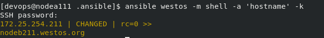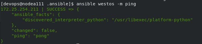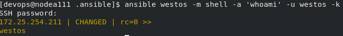 [devops@nodea111 .ansible]$ ansible westos -m user -a 'name=test'