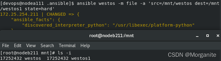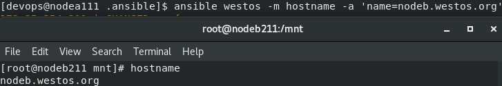 [devops@nodea111 .ansible]$ ansible westos -m file -a 'src=/mnt/westos dest=/mnt/westos1 state=hard'
