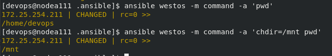 [devops@nodea111 .ansible]$ ansible westos -m file -a 'path=/mnt/westos state=directory mode=777'