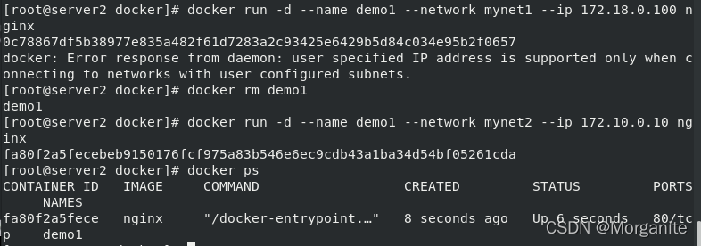 [root@server1 ~]# docker rm demo 删除进程