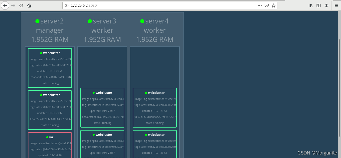 [root@server2 ~]# docker service create --name webcluster -p 80:80 --replicas 3 nginx