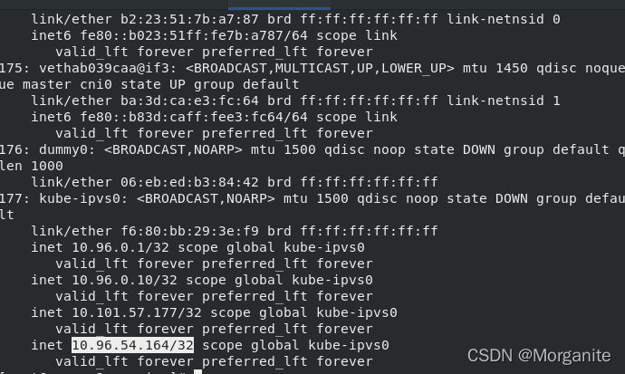 IPVS模式下,kube-proxy会在service创建后,在宿主机上添加一个虚拟网卡:kube-ipvs0,并分配service IP