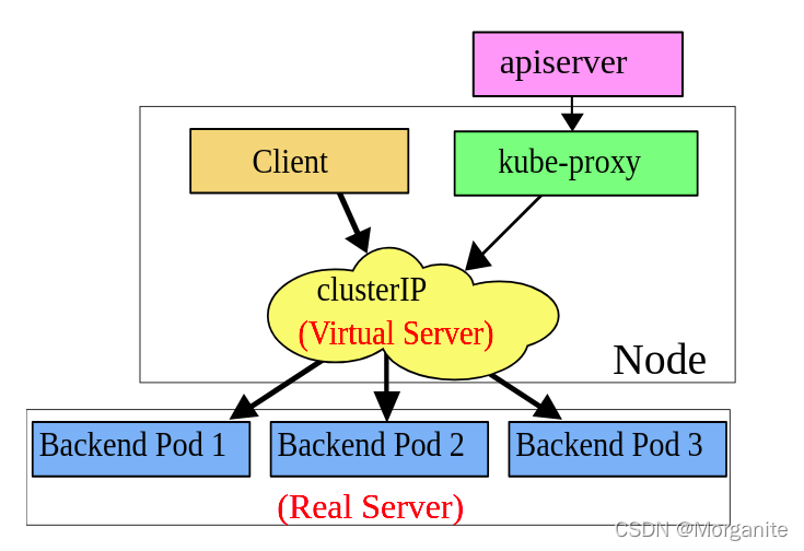 在 ipvs 模式下,kube-proxy 监视 Kubernetes 服务和端点,调用 netlink 接口相应地创建 IPVS 规则, 并定期将 IPVS 规则与 Kubernetes 服务和端点同步。 该控制循环可确保IPVS 状态与所需状态匹配。访问服务时,IPVS 将流量定向到后端Pod之一。