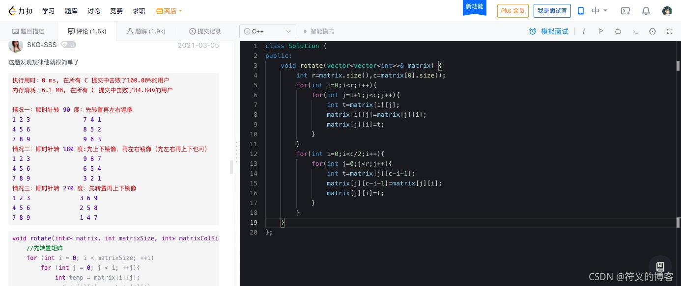 你必须在 原地 旋转图像,这意味着你需要直接修改输入的二维矩阵。请不要 使用另一个矩阵来旋转图像。