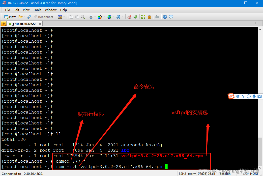[root@localhost ~]# rpm -ivh vsftpd-3.0.2-28.el7.x86_64.rpm