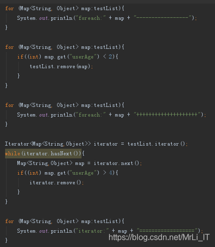 这个和我们第一个的结果正好相反,使用Iterator这个方法是可以直接删除的,而使用foreach方法是会报错