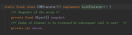 当你直接跳转到CopyOnWriteArrayList中你会发现CopyOnWriteArrayList并没有实现Iterator,但是我们可以在下方发现