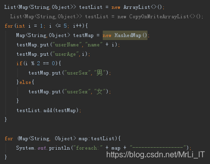 1、当List中有五个对象的时候,使用CopyOnWriteArrayList实例化