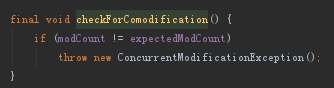 我们可以先看一下ArrayList的错误,我们会发现,我们并没有使用到Itr,但是错误中首先是用的Itr中的checkForComodification这个方法
