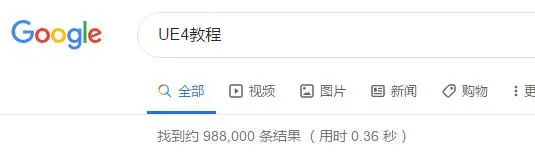 为了避免大家觉得我有失公允,我专门再用google搜索了一次,UE4教程为98.8万个结果,Unity教程为638万个结果,Unity的相关结果是UE4的6倍之多。
