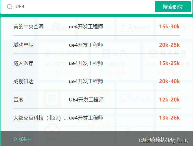 那么最后,我们来看看Unity和UE4两大引擎,在市场上的人才需求是怎样的!我会从职位需求和平均薪资来简单分析,让大家对此有一定了解。