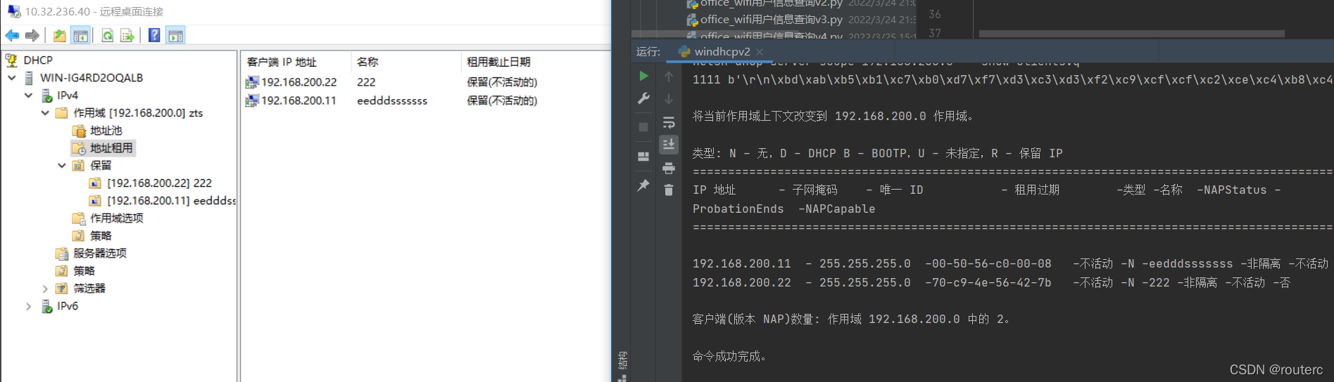 二、Python通过ssh脚本获取到dhcp的用户信息