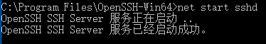 5、然后使用命令打开sshd,如下: net start sshd